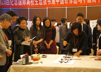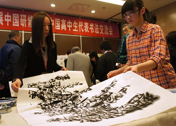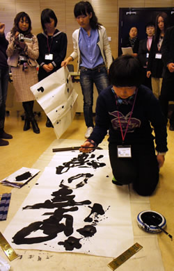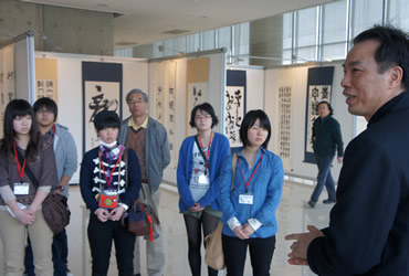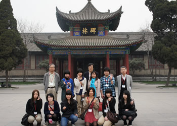 2012年20回目の節目を迎えたのを記念して、5日間の中国研修を行いました。仲川恭司審査部長を団長に、文部科学大臣賞、第20回記念特別大賞、大賞の受賞者9名と全国優勝および準優勝の2校の指導者が、中国の3都市を訪問し、現地の高校生らと書道交流を深めました。また、西安・碑林博物館など、書の原点ともいえる名所を見学して、多くの感動を得ました。この経験はいつの日か各々の書に生かされることでしょう。