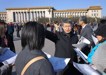 北京:天安門広場、日中高校生書道交流会、昼食会