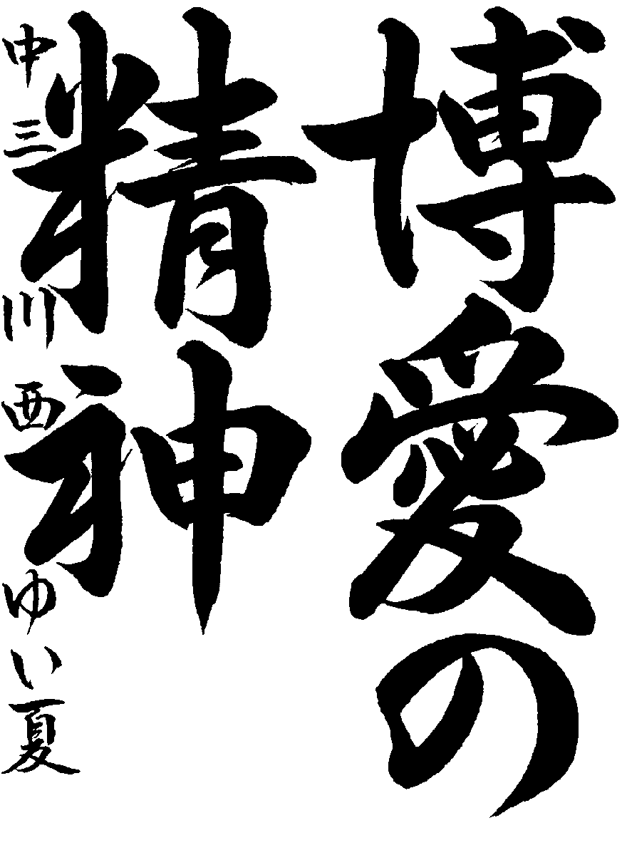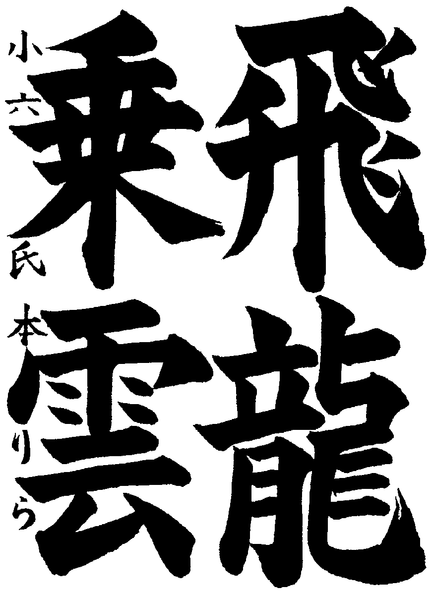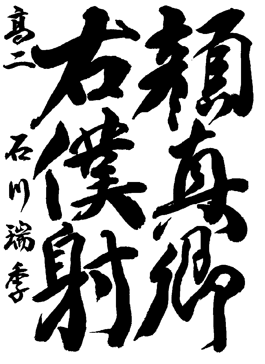 和歌山市立福島小3年、寺田はな美▽奈良県智辯学園奈良カレッジ小学部6年、氏本りら▽岡山市立竜操中3年、川西ゆい夏▽神奈川県立茅ケ崎北陵高2年、石川瑞季▽秋田市、石塚恵里子(以上半紙の部)▽相模原市、黒田寿鴻(条幅の部)