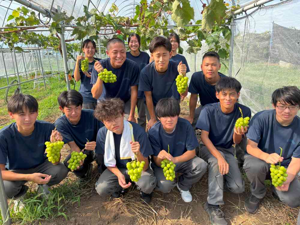 稲作農家に必ずある育苗ハウスは、実際には年間2カ月ほどしか使われていません。私たちは、この未利用期間にシャインマスカットを栽培することで農家の所得向上につながる取り組みを進めています。ハウスの有効活用で所得向上を支援し、小規模稲作農家(最近ではサツマイモ農家も加わりました)の未来を切り開きます。- 5 群馬県立大泉高等学校 造園デザイン研究部