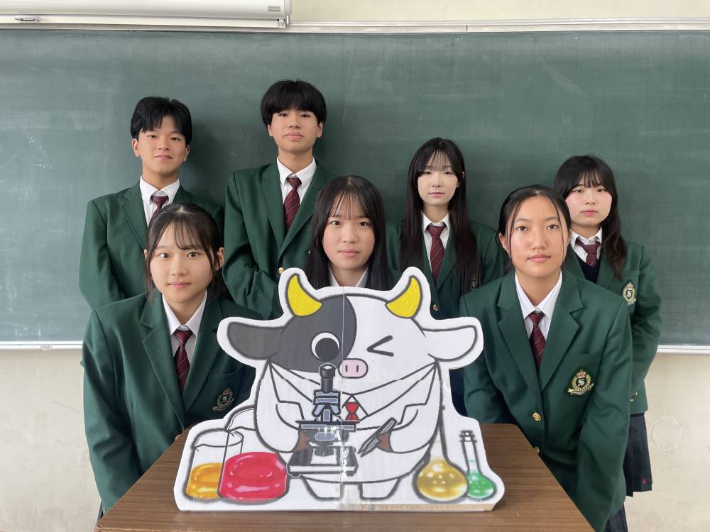 私たちは準絶滅危惧種であるキクタニギクを保全し、加工品として販売することで知名度の向上や6次産業化を目指しています。現在、地域団体「都の福菊」や京都府立大学と協力し、地域に根差した活動を継続しています。3年間という期間を通して丁寧に計画を立て、後輩に引き継ぎながらキクタニギクを自生地で復活させるため、班員一丸となって協力し、目標達成のため全力で取り組んでいきます。- 13 京都府立農芸高等学校 畜産部