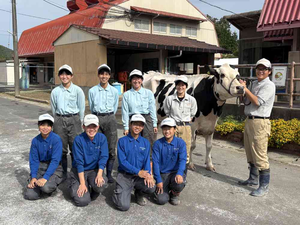 私たちは、「365日の徹底した飼養管理」をテーマに活動しています。近年の酪農家の減少を受け、未来を見据えた酪農経営の可能性を探り、生産性向上を目指して今回の活動を行うことにしました。ゲノム解析を行うことで将来の乳量や疾病リスクなどを可視化することができ、OPU(経膣採卵)技術を利活用することでハイスピードの牛群改良ができます。この技術で年間平均乳量1万2000㌔㌘を目指し、酪農振興につなげていきたいと考えています。- 14 愛媛県立大洲農業高等学校 チームBasho Farm Innovators