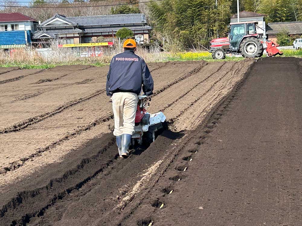 本校フードビジネス科畑作経営研究班の「農福連携」活動も4年目を迎えました。今年は5haという広大な農場の一画に、約30aの農福農場を準備して、おなじみの障がい者就労支援事業所しろはと工房となでしこ保育園のみなさんにもニンジン、キャベツ、サツマイモなどを種まき、苗の定植から管理作業、収穫、販売、調理や加工まで経験していただくために、畝立て作業を行いました。今年度はニンジンは保育園の給食や本校販売所での販売、キャベツはこの活動から生まれた「たかなべお茶ぎょうざ」の具材、サツマイモはしろはと工房名物である本校とのコラボ商品「スイートポテト」の原料として使用します。また、今年は販路を宮崎市の名門ホテルにも広げていく予定で、結果が出るのが今から楽しみです。