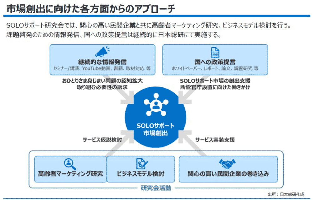 高齢者にとって「身じまい」は切実な問題だ。しかし、高齢の単身世帯は増える一方。家族の支援を受けられないまま何をすればいいかわからず、本人の生前や死後に問題が生じるケースは少なくない。日本総合研究所はこうした現状に着目し、10月に「SOLO(ソロ)サポート研究会」を発足させた。一人でも身じまいできる社会づくりにつながる高齢者向けの支援サービスを、ビジネスとして成り立たせることを目指す。
