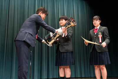 団体の部全国優勝杯を受け取る仙台育英学園の代表