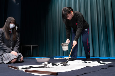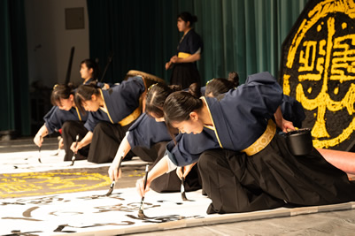表彰式で書道パフォーマンスを披露する仙台育英学園