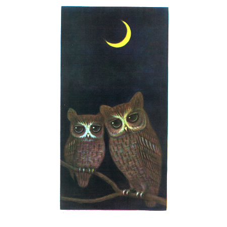 版画「このはずく」(235×125)