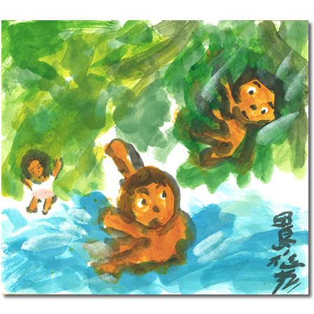 色紙「やんばるの少年たち」