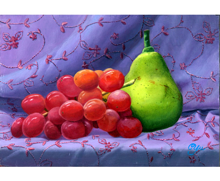 SM(サムホール)カンバス「洋梨と葡萄」