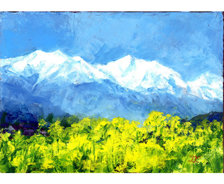 F4号カンバス「後立山連峰と菜の花」(爺ヶ岳・鹿島槍ヶ岳)