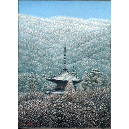 F4号カンバス「雪の朝(真如堂)」