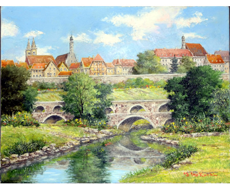 F6号カンバス「ロマン街道新緑(ローテンブルグ・独)」
