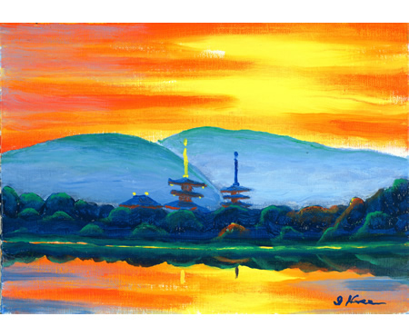 F4号カンバス「朝日輝く薬師寺」