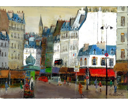 F4号カンバス「街角のカフェ」