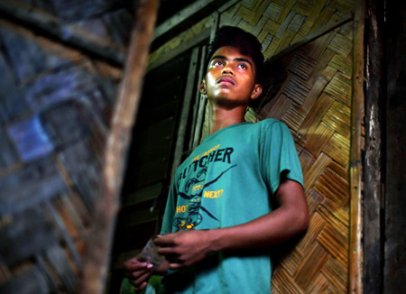 フィリピンのカマリネスノルテ州ラボに住む高校2年のブライアン・チカノさん(16)は血を吐いた2日後に取材に応じた。「動くと息苦しい。めまいもする。仕事で吸い続けた水銀の蒸気が原因なのかな」。胸をさすり目には涙が浮かぶ。