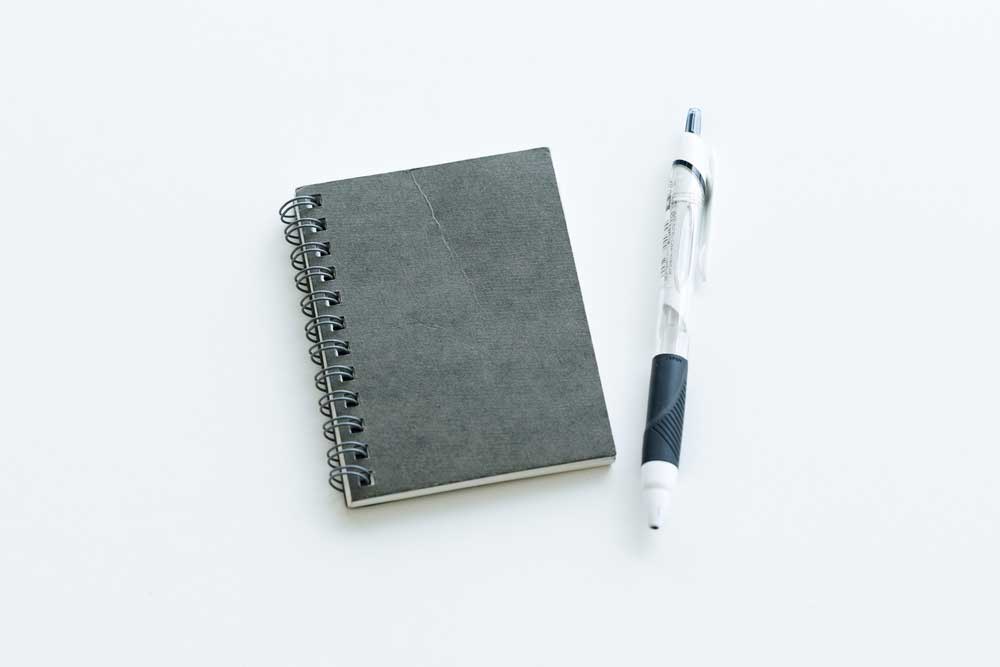 仕事で使っているノートとボールペン。小さなネタも仕事につながる可能性があるので、普段から持ち歩いて書き残せるようにしています