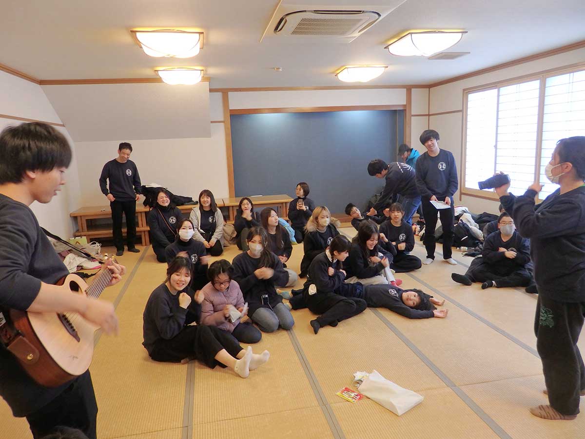 そして2日目の午後。真っ青に晴れ渡っていた空が急変、もこもことした雪雲に覆われたと思ったら、冷たい突風がピュー! 雪も降り出し、あっという間にふぶきの状態になりました。急きょ「撤収」です。親子そろってのゲームや餅つき大会は屋内で行いました。自然の力のすごさを学びました。